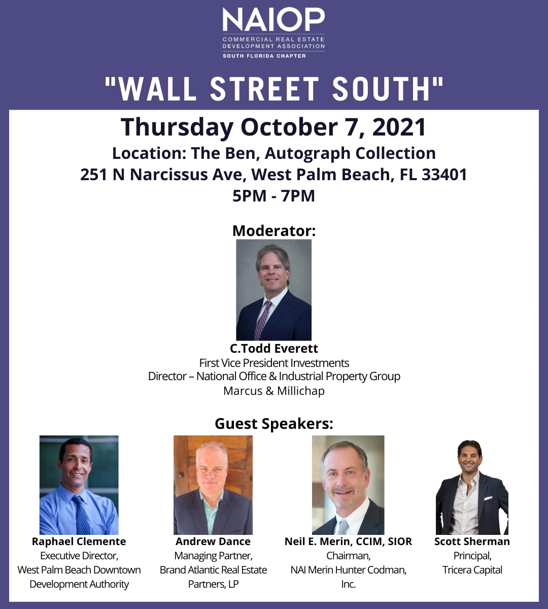 For the member ticket option to display, please log in with your email. For Gemstones, please email alba.garcia@naiopsfl.org to use your ticket(s).10/7/21 NAIOP Chapter Meeting: Wall Street South